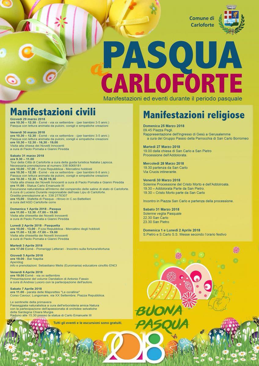 Molte sono le iniziative che ogni anno interessano Carloforte (e l'Isola di San Pietro) in occasione della Pasqua: anche in questo 2018 non mancherà l'occasione per celebrare al meglio questa importante ricorrenza religiosa